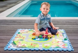 Penové podlahové puzzle Dedina je ideálnou voľbou do detských izieb aj herných kútikov. Diely s farebnou potlačou vytvárajú hraciu plochu, ktorá je príjemná na dotyk, ľahko sa udržiava a zároveň chráni deti pred chladom z podlahy. Rýhovaný povrch bez vyberateľných dielikov zvyšuje bezpečnosť pri hraní.