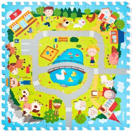 Vytvorte deťom pohodlné a bezpečné miesto na hranie s penovým puzzle Dedina od PLASTICA. Mäkký a umývateľný koberec skvele izoluje od chladu, tlmí hluk a je zdravotne nezávadný. Balenie obsahuje 9 štvorcových dielov s farebnou potlačou, ktoré po zložení vytvoria podložku cca 90 × 90 cm.