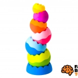Úspešná kombinácia atraktívneho dizajnu podporujúceho fantáziu a nápad. Ukladaním tvarov rôznych veľkostí dochádza k aktivácii drobných svalov a k rozvoju jemnej motoriky. Podporuje správny vývoj koordinácie oko-ruka a zdravý psychomotorický rozvoj. Skladacia veža má 7 dielikov, ktoré možno rôzne otáčať, rozkladať a skladať.