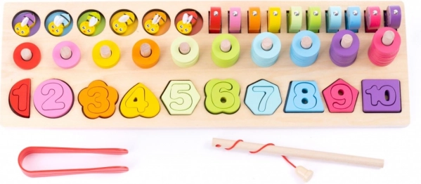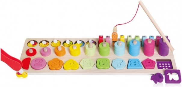 Drevená vzdelávacia sada 4v1 s číslami, tvarmi a magnetickým rybolovom