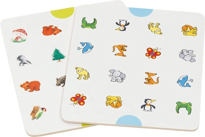 Drevené pexeso Zvieratká a symboly je hra, ktorá posunie vaše pexeso na novú úroveň. Hráči vkladajú kartónové predlohy s obrázkami do základnej drevenej dosky a zakrývajú ich modrými kameňmi. Hra prebieha rovnako ako klasické pexeso, ale víťazí ten, kto nazbiera najviac modrých kameňov.