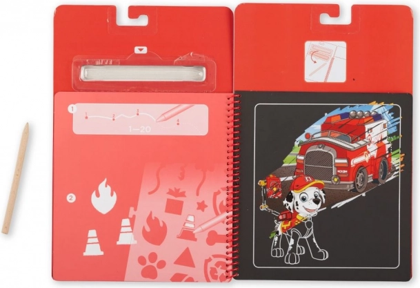 Pod čiernou vrstvou sa skrývajú pestré farby a scény s Marshallom. Deti si užijú okamžitý „wow“ efekt pri každom poškrabaní.