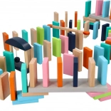 Objavte zábavné a edukatívne farebné drevené domino so 128 prvkami, ktoré deti vedie k tvorbe kreatívnych dráh a reťazových reakcií. Set s kolotočom, veterníkom, bránkou s guľôčkou, schodíkmi a mostmi rozvíja jemnú motoriku, logické myslenie a priestorovú predstavivosť. Vhodné od 3 rokov, ideálne na rodinnú aj skupinovú hru.