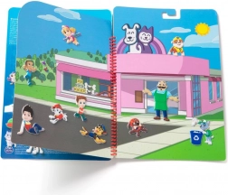 Všetky scény aj samolepky sú pokope v pevnom zošite – ideálne na cestovanie a upratané hranie.
