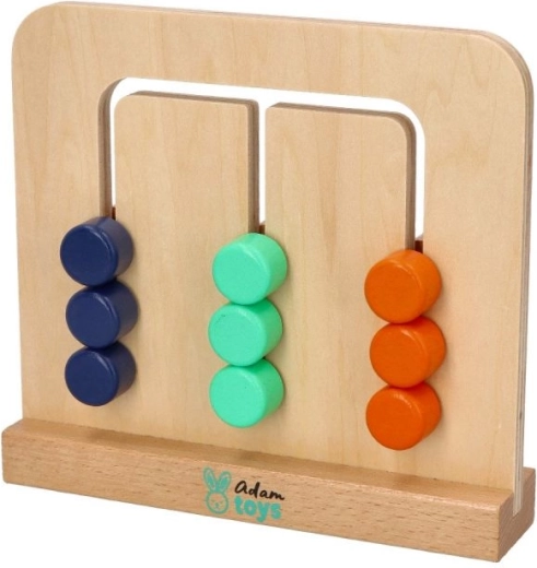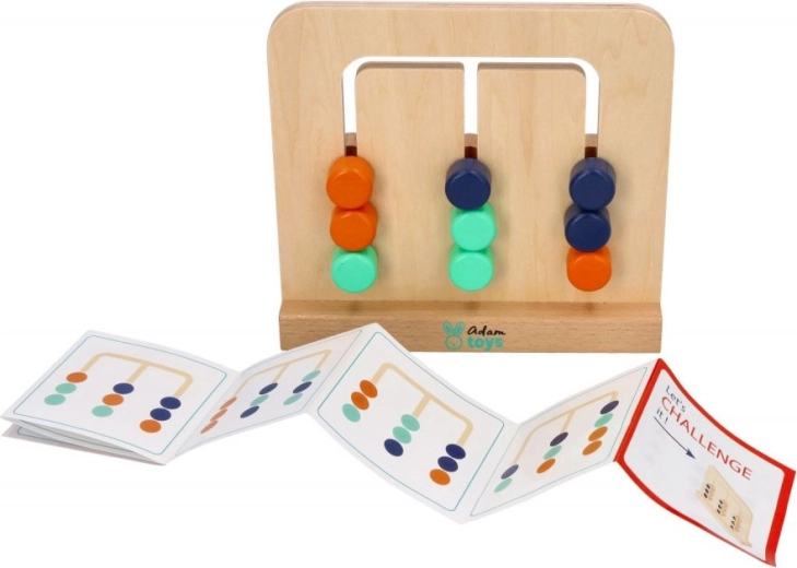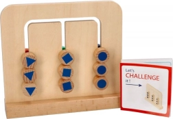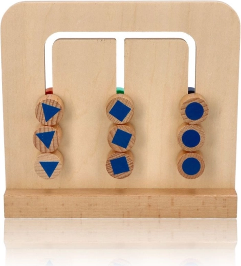 Sada obsahuje drevené puzzle s 9 blokmi v 3 farbách alebo 3 vzoroch na druhej strane a obojstrannú brožúru s mapovými kartami. Zábava spočíva v tom, že bloky preskladáte tak, aby tvorili vami zvolený vzor.