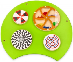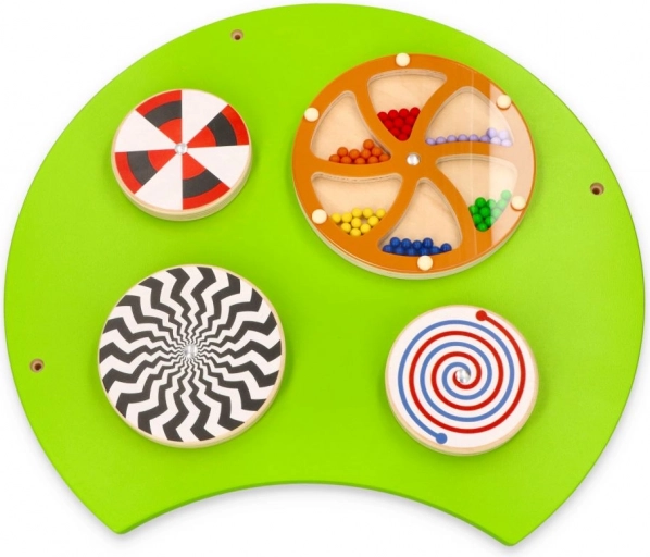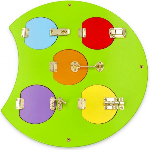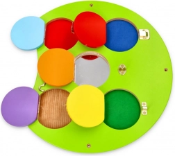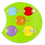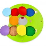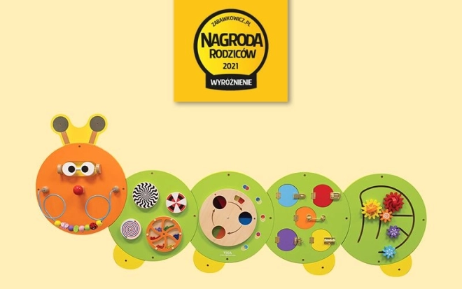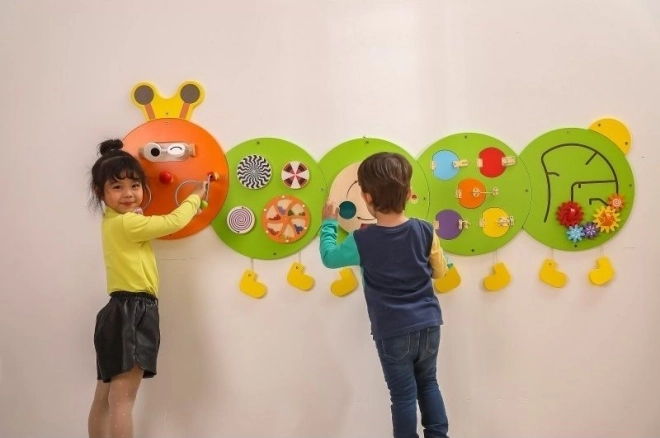 Preskúmajte svet plný farieb s touto nástennou zostavou v tvare húsenice. Obsahuje päť interaktívnych častí, ktoré deťom umožňujú učiť sa pomocou hry a rozvíjať rôzne zručnosti: