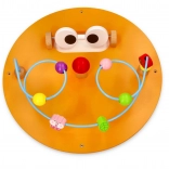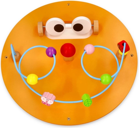 Hlava húsenice je vybavená kovovou slučkou s drevenými korálikmi, ktoré deti môžu presúvať po labyrinte.
