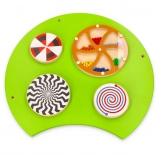 Druhá časť zahŕňa kolesá s rôznymi vzormi, ktoré pri otáčaní vytvárajú vizuálne efekty.