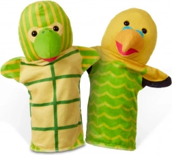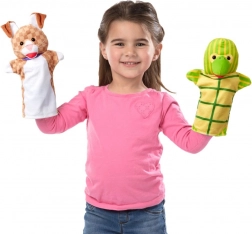 S touto farebnou sadou bábok na ruku oživíte každé domáce divadlo. Deti môžu ľahko vložiť ruku do bábky a rozhýbať zvieratká – psíka, mačičku, králika, koníka, papagája či korytnačku – a vytvárať príbehy plné emócií a smiechu. Bábky sú mäkké, bezpečné a vhodné pre malé detské ruky.