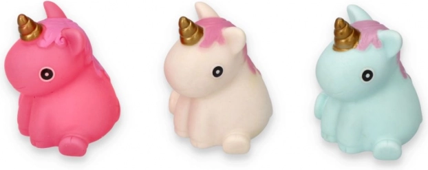Objavte čarovný svet kúpeľa so sadou jednorožcov v nežných farbách. Každý jednorožec má zlatý roh a veselú hrivu, ktoré podnecujú detskú fantáziu. Vďaka príjemnému mäkkému materiálu sa ľahko stláčajú a sú ideálne pre malé detské ruky.