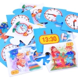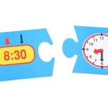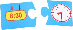Sada obsahuje 24 dielikov, ktoré tvoria 12 párov. Každý pár sa skladá z dvoch puzzle dielikov - jeden s ručičkovými hodinami a druhý s digitálnymi hodinami, ktoré ukazujú rovnaký čas.