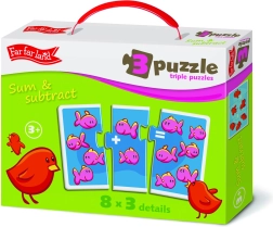 S puzzle trojicami dielikov, ktoré sa skladajú z obrázkov, deti ľahko pochopia základné pojmy matematiky v hravom prostredí. Táto sada je ideálna pre rozvoj logického myslenia a kognitívnych schopností.