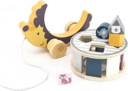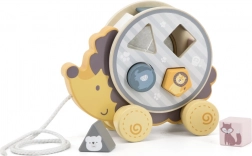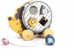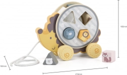 Drevený ježko na kolieskach so sortérom tvarov podporuje jemnú motoriku, koordináciu oko–ruka a učenie tvarov a farieb. Vďaka ťahaciemu povrázku motivuje deti k pohybu a samostatnej chôdzi. Bezpečné prevedenie, hladké hrany a kvalitný materiál sú ideálne pre deti od 2 rokov.