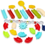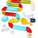 Táto vodná guľôčková dráha do vane prináša do každodenného kúpeľa množstvo zábavy aj učenia. Diely v pestrých farbách sa ľahko kombinujú, takže môžete vytvárať stále nové konfigurácie a experimentovať s rýchlosťou guľôčok aj smerom toku vody.