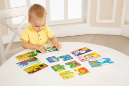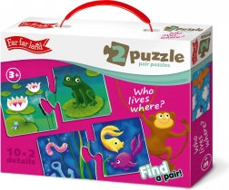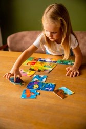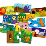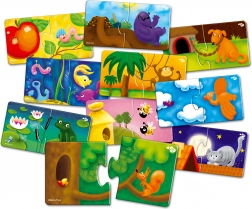 Far Far Land Puzzle je ideálna vzdelávacia hračka pre deti od troch rokov. Táto sada obsahuje 10 puzzle obrázkov, z ktorých každý sa skladá z dvoch dielikov – na jednom je zvieratko a na druhom jeho príbytok. Vďaka tejto hre sa deti učia poznávať rôzne typy zvierat a ich prostredia, čím rozvíjajú svoju schopnosť triedenia a kombinácie.