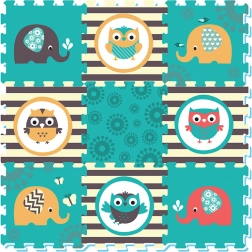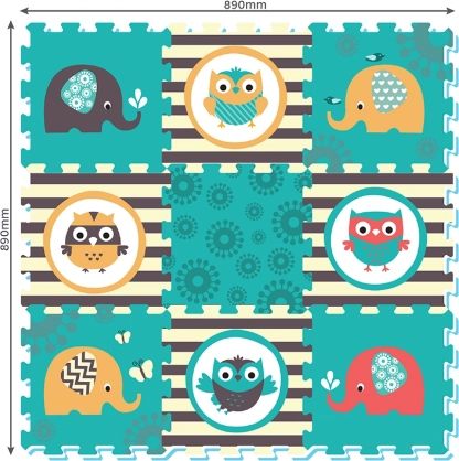 Penová skladačka s motívmi Sovy a Slona v živých farbách upúta pozornosť každého dieťaťa.
