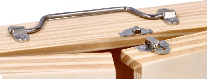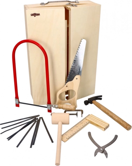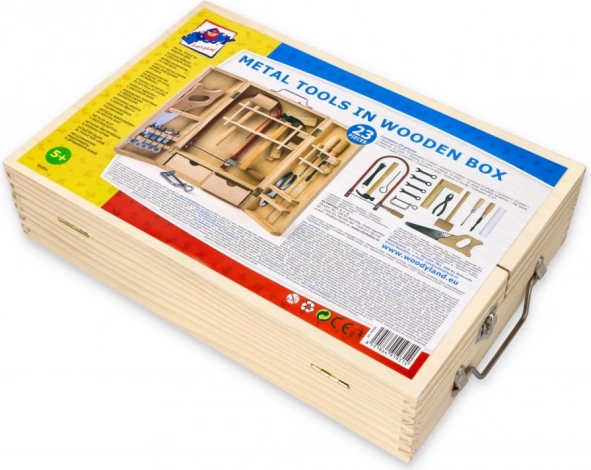Drevená krabica s kovovým náradím