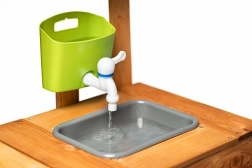 Plastový drez s bielym kohútikom a nádržkou umožní deťom bezpečne nalievať a vylievať vodu, učí ich základom hygieny aj starostlivosti o poriadok pri hre.