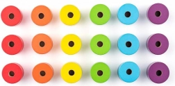 Pestrá paleta farieb podporuje rozpoznávanie farieb, triedenie a tvorbu rytmických sekvencií pri hre.