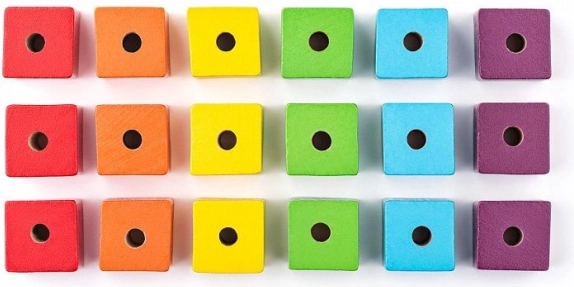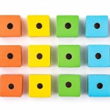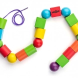 Koráliky s veľkosťou približne 3 × 3 cm sa deťom ľahko uchopujú a navliekajú – ideálne pre prvé pokusy bez frustrácie.