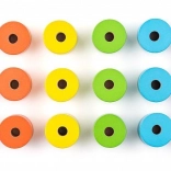 Veľké drevené koráliky s otvorom na ľahké prevliekanie sú skvelou pomôckou do domácnosti aj škôlky. Vďaka výrazným farbám a príjemnému materiálu deti rady trénujú triedenie, skladanie a navliekanie, čím si nenásilne precvičujú zručnosti potrebné na písanie a koncentráciu.