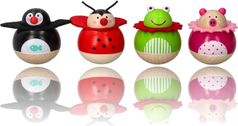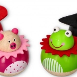 Zaoblená spodná časť zabezpečí, že sa žabka po každom postrčení sama vráti do zvislej polohy. Ideálne na prvé objavovanie rovnováhy a vzťahu príčina–následok.