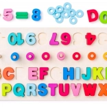 Doska kombinuje učenie abecedy, čísel a základných matematických operácií, čo z nej robí všestrannú pomôcku pre deti.