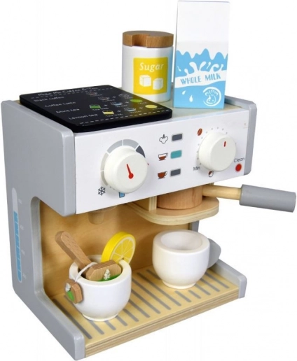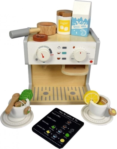 Obohaťte detskú hru na domácnosť a kuchyňu s touto úžasnou drevenou sadou kávovaru a čajovaru. Set je navrhnutý tak, aby deti mohli imitovať prípravu nápojov a baviť sa pri kreatívnej hre. Tento kávovar je vyrobený z kvalitného dreva, čo zaisťuje jeho dlhú životnosť a bezpečnosť pre deti.