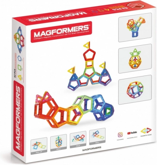 Súbor magnetických stavebníc MAGFORMERS BASIC 62 je ideálnym riešením pre tých, ktorí chcú objaviť kúzlo kreatívneho stavania. Tieto stavebnice obsahujú silné neodymové magnety, ktoré sa vždy spoja, keď sa priblížia. Stačí, keď priblížite dve strany vedľa seba a okamžite sa spoja. Vďaka prvkom, ktoré sú tvarované podľa geometrických figúr, si môžete vybudovať úžasné trojrozmerné stavby.