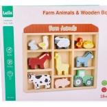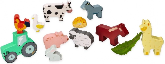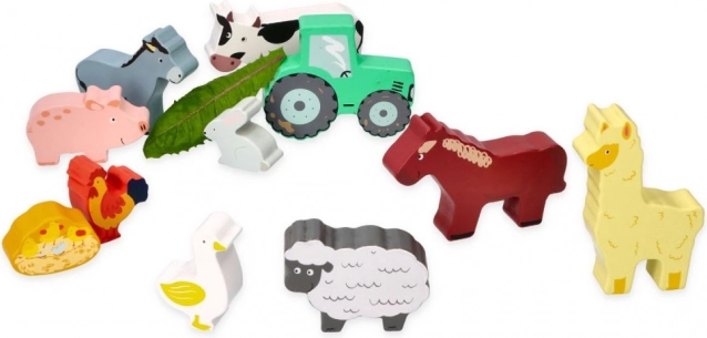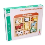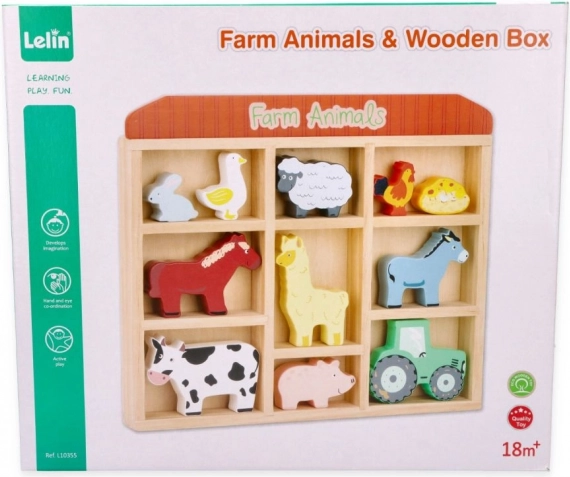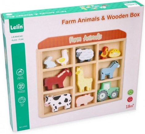 Táto sada obsahuje rôzne zvieratká ako kravičku, koníka, ovečku, prasiatko, sliepočku a ďalšie, vrátane malého traktora pre ešte väčšiu zábavu. Všetko je uložené v praktickom drevenom ráme, ktorý slúži aj ako úložný priestor.