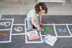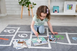 Farebné guľôčky deti priraďujú k ilustráciám zvierat a jednoduchým vzorom. Učenie farieb, počítanie a triedenie prebieha prirodzene formou hry.