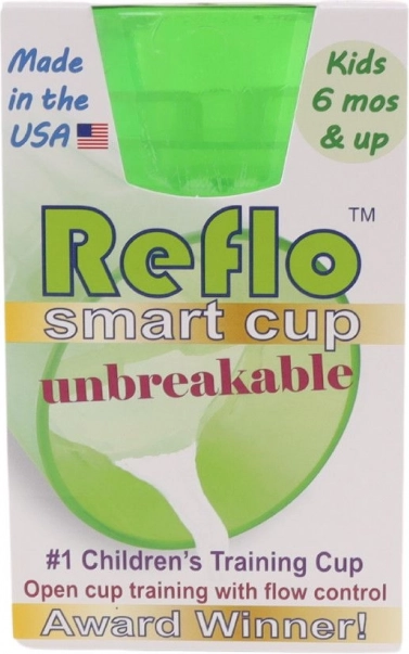 Naučte dieťa piť z otvoreného hrnčeka bezpečne a s istotou – hrnček REFLO ponúka riadenie prietoku pre jednoduchý tréning, je nerozbitný, vhodný od 6 mesiacov, má praktický objem 170 ml (280 ml celkovo) a je vyrobený v USA.