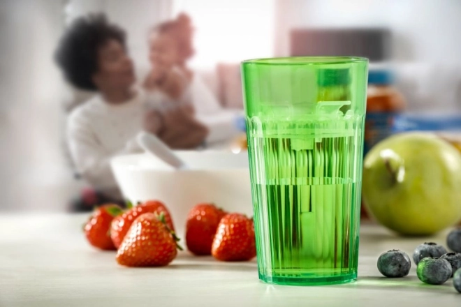 Špeciálna vložka vo vnútri hrnčeka spomaľuje prúdenie tekutiny, takže si dieťa bezpečne osvojí pitie z otvoreného hrnčeka bez náustkov a slamiek.