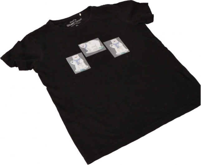 Ako na to: vystrihnite motív, umiestnite na zvolené miesto, žehličku nastavte na 150–180 °C (bez pary) a pritlačte 10–15 s. Po vychladnutí zložte transferovú fóliu. V prípade potreby proces krátko zopakujte.