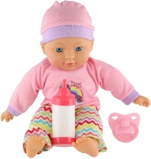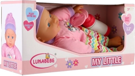 Bábika je dodávaná s fľaštičkou a cumlíkom, čo poskytuje deťom realistický herný zážitok. Vďaka svojmu mäkkému telíčku je tiež vhodná pre maznanie a poskytuje pocit bezpečia.