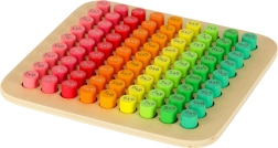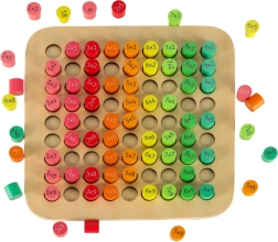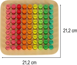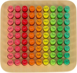 Táto veľká drevená tabuľka násobilky je ideálna pomôcka pre školákov od 7 rokov. Vďaka prehľadným kockám s príkladmi a výsledkami sa deti učia násobenie vizuálne a hravo. Farebné prevedenie zvyšuje prehľadnosť a podporuje ľahšie zapamätanie.