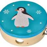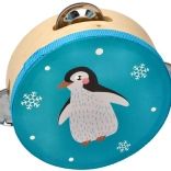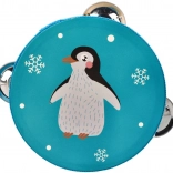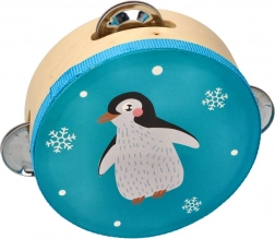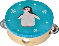 Táto farebná tamburína s ilustráciou tučniaka je skvelou voľbou pre prvé hudobné krôčiky. Vďaka kompaktným rozmerom sa deťom dobre drží a podporuje koordináciu, rytmus a sluchové vnímanie. Pevný drevený rám a kvalitné kovové pliešky vytvárajú jasný zvuk, ktorý deti baví.