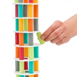 Súčasťou je hracia kocka s farbami, ktorá určuje, aký dielik má hráč vytiahnuť alebo pridať. Vďaka kvalitnému drevu a bezpečnému spracovaniu je hra vhodná na každodenné hranie. Veža môže dosiahnuť výšku až 35 cm, čo pridáva na vzrušení aj tréningu trpezlivosti.