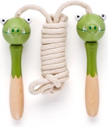 Šnúry majú drevené rukoväte v tvare zvierat, ktoré dodávajú zábavný prvok do každodenného cvičenia.