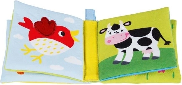 Obrázková knižka pre najmenších je ušitá z bavlny a obsahuje dômyselne všité pískacie a šuštivé fólium, čo z nej robí zábavnú a interaktívnu hračku na rozvoj detských zmyslov. Táto knižka ponúka 4 farebné listy s ôsmi rôznymi obrázkami, ktoré podporujú vizuálnu stimuláciu. Dôkladné spracovanie zaisťuje, že knižka je bezpečná pre deti od narodenia.
