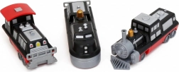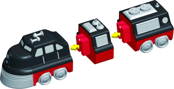 V balení je 9 dielov, z ktorých zložíte 3 pripravené vlaky. Zmenou modulov vytvoríte desiatky originálnych variantov bez obmedzenia fantázie.