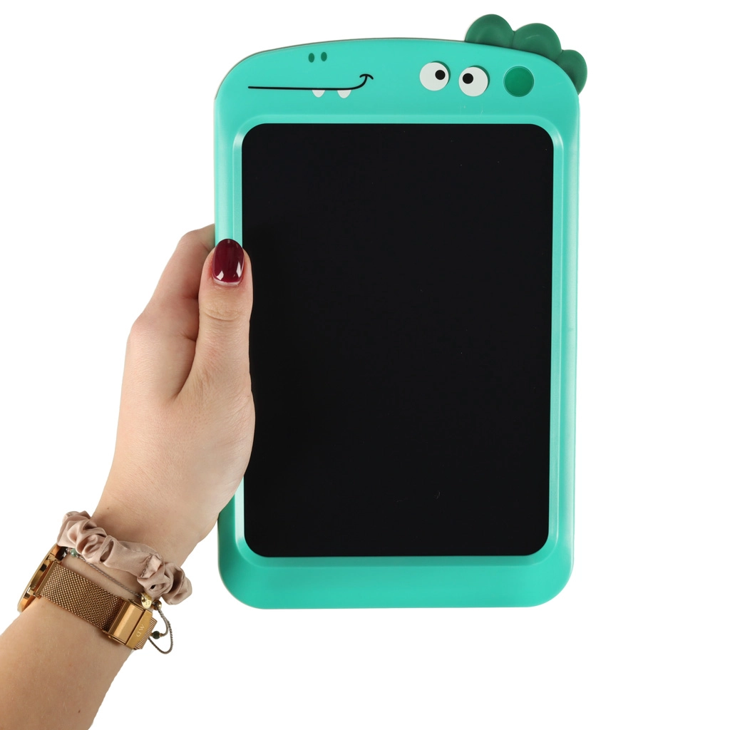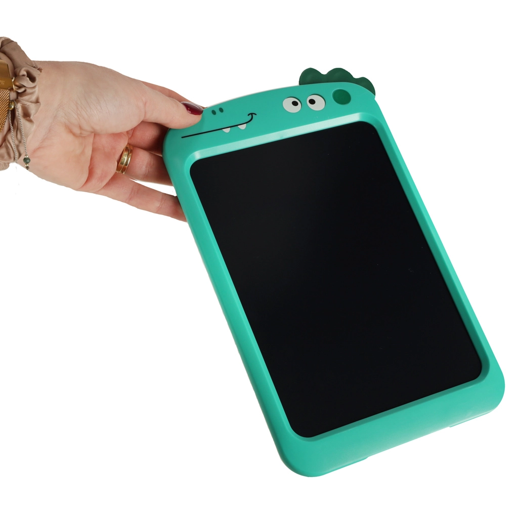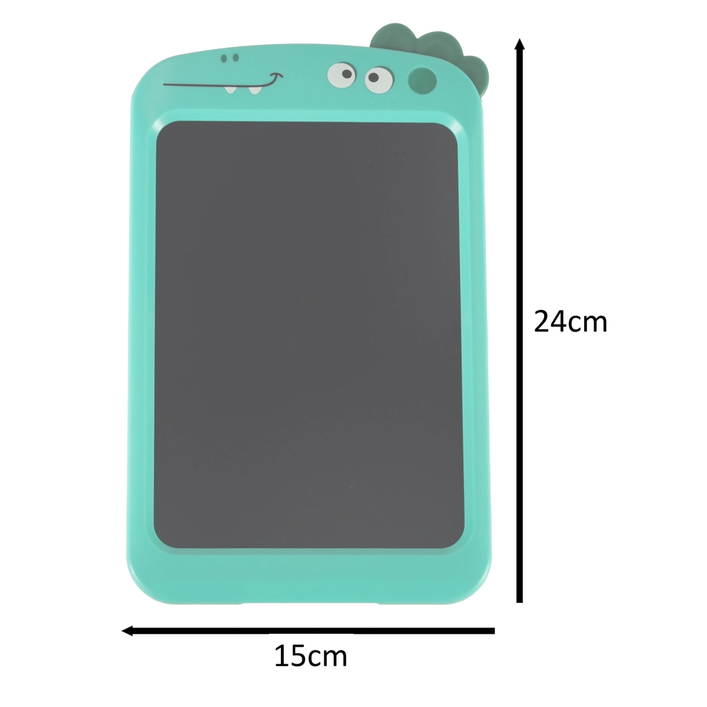 Náš tyrkysový kresliaci tablet s motívom dinosaurov je stvorený pre malých umelcov. Je vybavený čiernou plochou na písanie a stylusom, čo deťom umožňuje rozvíjať ich kreativitu a motorické zručnosti. Tablet nahrádza tradičné papierové bloky a jeho hlavnou prednosťou je, že je bezpečný pre oči, pretože nevydáva žiadne škodlivé žiarenie.