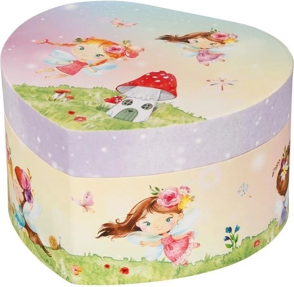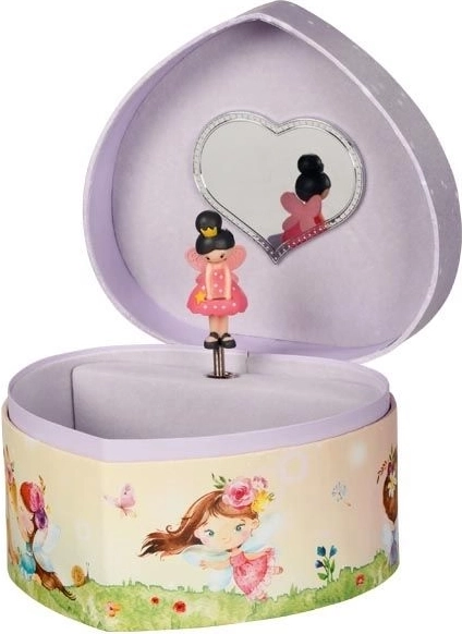 Elegantná hracia šperkovnica s motívom víly poteší každú malú parádnicu. Po otvorení sa rozoznie melódia Labutie jazero a víla sa roztancuje pred srdiečkovým zrkadielkom. Ideálna na bezpečné uloženie detských šperkov a drobností, krásna dekorácia do detskej izby.