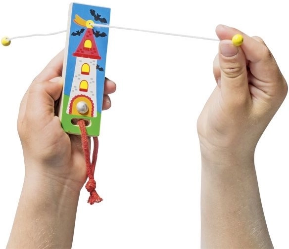 Objavte jednoduchú, ale pútavú drevenú hračku, s ktorou si deti precvičia jemnú motoriku, koordináciu oko–ruka a užijú si množstvo zábavy s efektom „miznúcej šnúrky“. Kompaktné rozmery sú ideálne na cesty a do detských batôžkov. Vhodné pre deti od 3 rokov a s CE deklaráciou zhody.