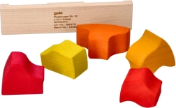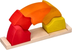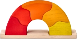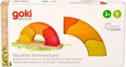 Drevená skladačka Východ slnka od značky GOKI prináša deťom aj rodičom radosť z objavovania. Farebné oblúky v odtieňoch žltej, oranžovej a červenej sa ukladajú na drevenú základňu, kde podnecujú experimentovanie, stavanie a voľnú tvorivú hru. Hračka prirodzene rozvíja koordináciu oko–ruka, trpezlivosť a základné princípy rovnováhy.