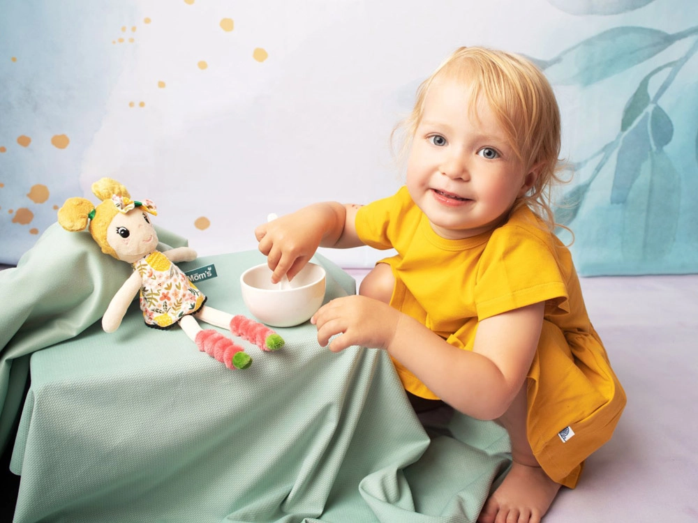Roztomilá a mäkkučká látková bábika Maja od Mom's Care je ideálnym prvým kamarátom pre najmenších. Má vyšívané očká a úsmev pre maximálnu bezpečnosť, antialergénnu výplň a príjemné textílie rôznych štruktúr na mojkanie aj upokojenie pred spaním.