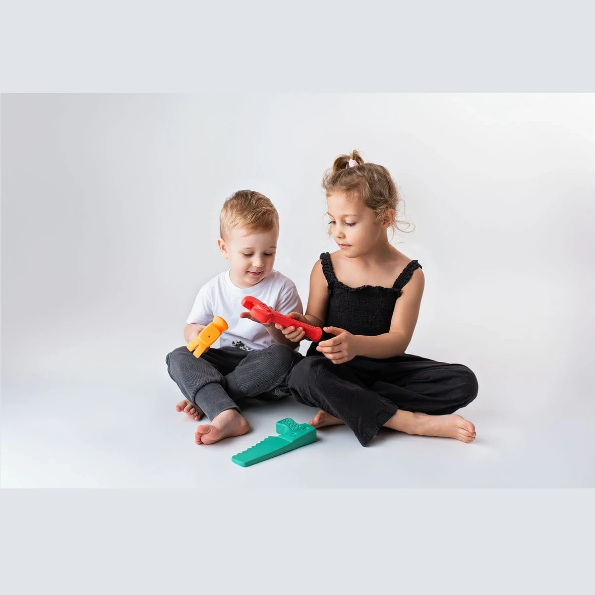 Objavte hravý set troch mäkkých nástrojov – pílky, kladivka a kľúča – navrhnutý pre bezpečnú hru a rozvoj zručností. Vďaka mäkkému materiálu, textúram a pastelovým farbám podporuje rozvoj jemnej motoriky, zmyslové vnímanie a koordináciu oko–ruka. Nástroje sú ľahké, pružné a bezpečné aj pre najmenšie deti.