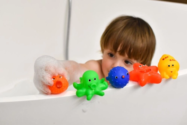 POZNÁMKA: Aby ste udržali hračku čistú, po každej vodnej hre vytlačte vodu zo stredu a položte hračku na suché miesto, aby sa zvyšná voda odparila. Po niekoľkých mesiacoch častého kúpanie odporúčame hračku vymeniť.