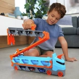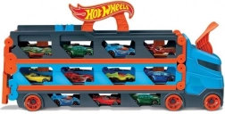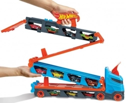 Premeň kamión behom chvíľky na plnohodnotnú závodnú trať. Transportér ukrýva až 20 autíčok za priehľadnými okienkami, takže máš zbierku stále na očiach. Po zatiahnutí za rukoväť sa náves rozloží do dvojprúdovej trate dlhej 1,8 m, zatiaľ čo kabína sa zmení na dvojitú vystreľovaciu stanicu pre férové štarty.