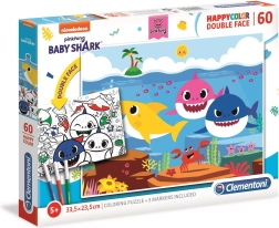Objavte kreatívnu hru, ktorá deti zabaví na dlhé hodiny. Obojstranné puzzle BABY SHARK prináša farebný motív obľúbených morských postavičiek na jednej strane a čiernobielu omaľovánku na strane druhej. Vďaka tomu deti nielen trénujú skladanie, ale tiež môžu obrázok dotvoriť podľa vlastnej fantázie.